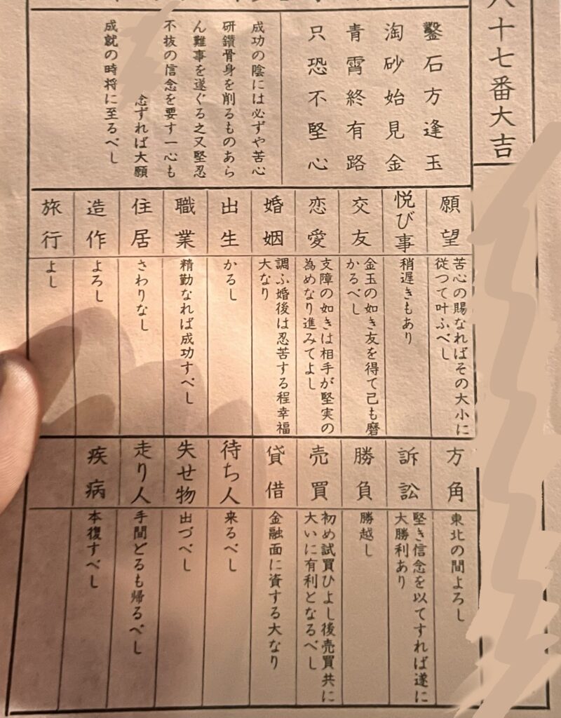 さっき『大吉引いた』って書いたのですけど… 内容がこちら