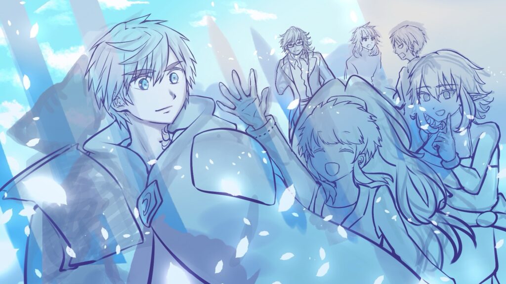 ・構図を考え、キャンバスに形を取ったあと、カラーラフを作る。これは初の試み。白と青基調のイラストは苦手です。人間の肌って、赤いじゃないですか。(?)